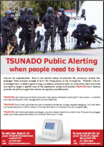 Tsunado is a system to distribute Alerts in a Civil Emergency, such as Tsunami, Fire, Flood, Chemical spill, etc. It support graduated alerting, Possible, Probable, and Certain, chosen by the user.