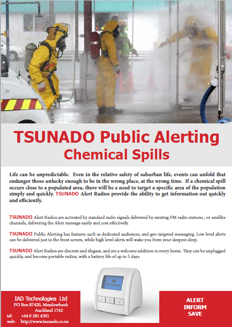 TSUNADO New Zealand Limited (aka DIWA) has developed a system for nationwide Public Alerting based on Broadcast Radio technologies. The decision to use Broadcast Radio and Satellite systems as the primary communication channel, as opposed to cellular and internet based technologies, is outlined in this White paper.